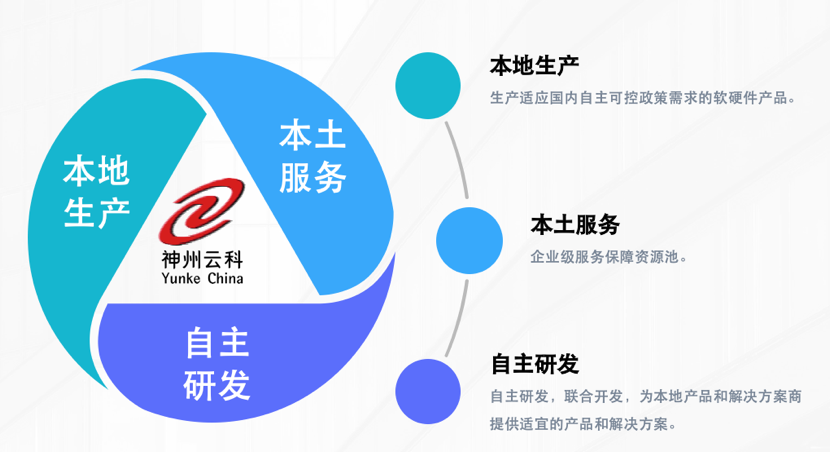 紧跟国家自主可控战略,神州db视讯官网通过“本地生产、本土服务、自主研发”的战略路径,打造自主品牌、生产自主产品,为合作伙伴提供神州数码自主品牌、自主知识产权的云基础设施产品、服务及解决方案。