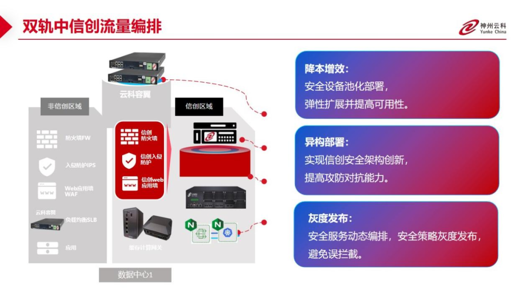 为了更好的适配双轨超高可用架构,神州db视讯官网应用交付控制器容翼系列产品和db视讯官网通明湖信创系列产品一方面可以保证信创产品的稳定性,弥合性能与企业应用要求的差距;一方面,当业务面对合规、风险和创新的挑战时,实现云原生可信开源与跨域协同。