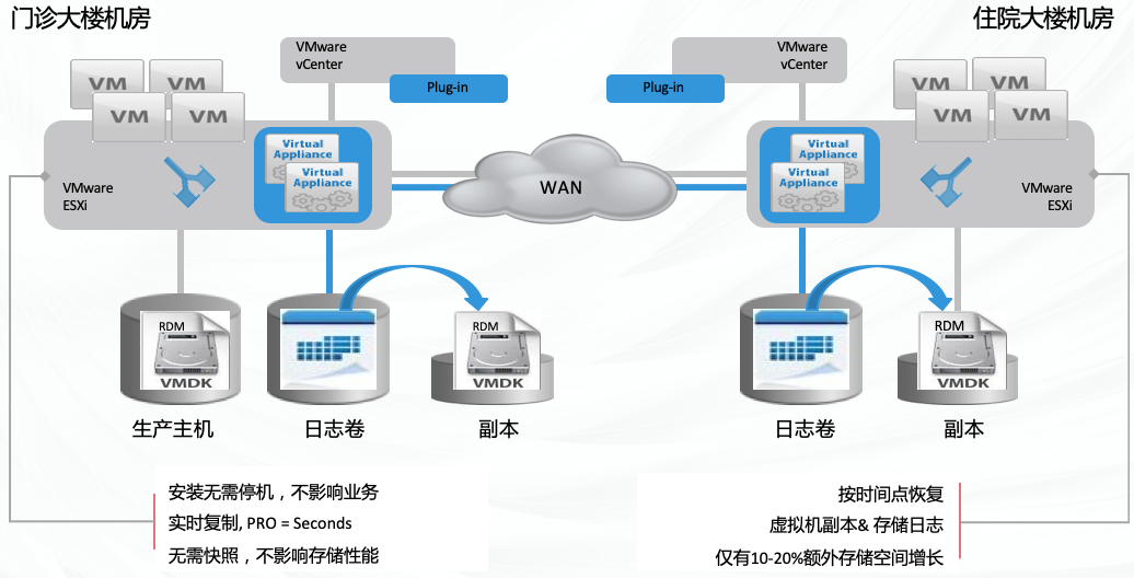 • 神州狗万电竞连续数据保护方案为医院虚拟化环境的关键业务实现两地三中心的容灾保护